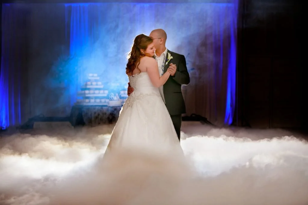 •Dancing on the Clouds Haze Machine - $250. Really WOW your guests and get the perfect video or photos of your first dance, We use a professional dry ice effect machine to lower dry ice into very hot water just as your first dance starts. The effect lasts for about 4 minutes. There is no moisture left on the floor and no fog left in the air.